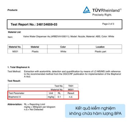 Ngăn lấy nước ngoài này còn làm bằng vật liệu không chứa chất BPA gây ung thư nên an toàn khi sử dụng được chứng nhận bởi tổ chức quốc tế TÜV Rheinlandv (nhà cung cấp dịch vụ hàng đầu về thử nghiệm, kiểm định và chứng nhận) có trụ sở chính tại Đức.