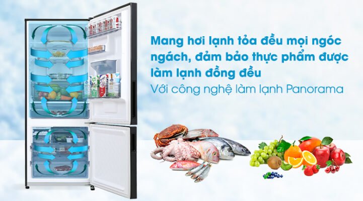 Với công nghệ làm lạnh vòng cung Panorama của Panasonic có khả năng làm lạnh đa chiều, bằng cách mang hơi lạnh lan toả nhanh chóng và đều đến từng ngăn chứa trong tủ.