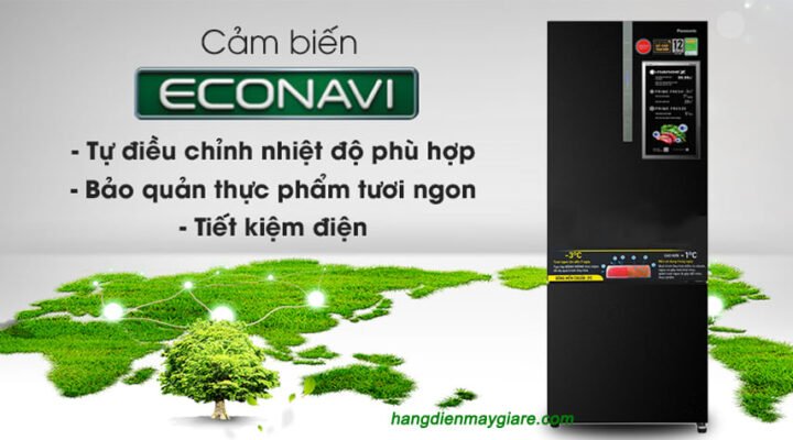 Tủ lạnh Panasonic trang bị cảm biến Econavi có khả năng nhận biết thói quen, nhiệt độ môi trường bên trong, bên ngoài, từ đó điều chỉnh nhiệt độ thích hợp để bảo quản thực phẩm và nâng cao hiệu quả tiết kiệm điện năng.