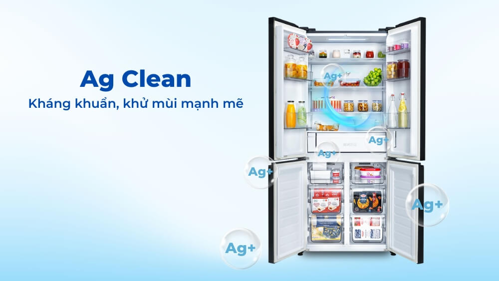 Để đảm bảo thực phẩm luôn tươi ngon và an toàn, tủ lạnh Panasonic NR-X561GB-VN tích hợp công nghệ Ag Clean hiện đại. Công nghệ này sử dụng các ion bạc để kháng khuẩn, khử mùi mạnh mẽ, giữ cho không gian tủ luôn sạch sẽ, trong lành.
