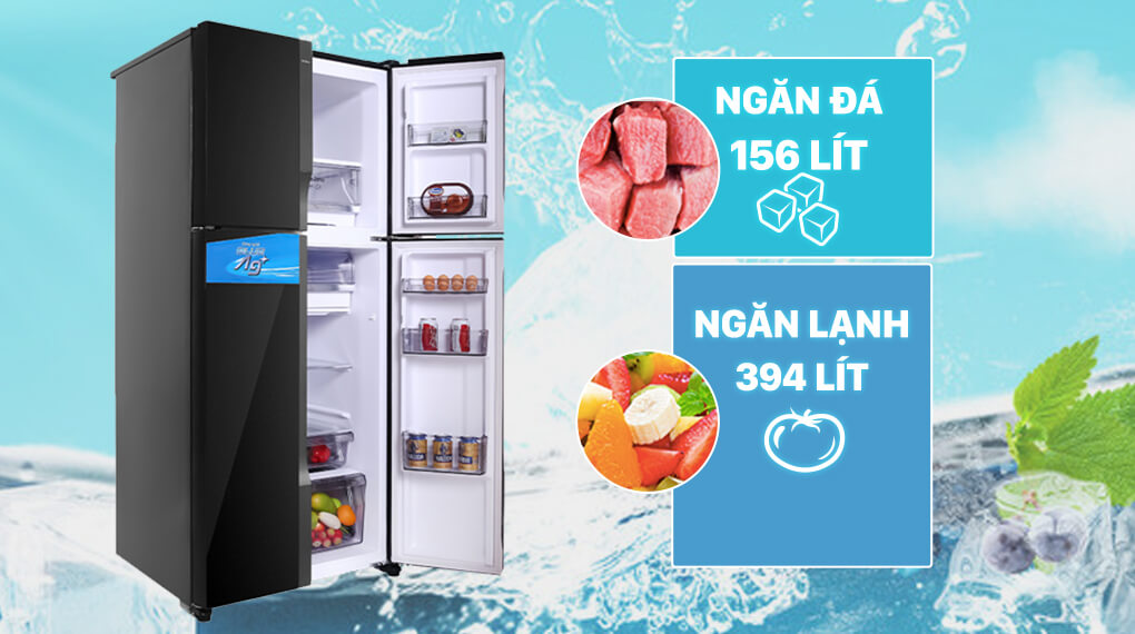 - Dung tích ngăn đá 156 lít: Được chia thành nhiều ngăn nhỏ, giúp bạn dễ dàng dự trữ thực phẩm đông lạnh.