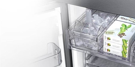 Hệ thống làm đá tự động của tủ lạnh Samsung Inverter 648 lít RF59CB66F8S/SV trực tiếp được lưu trữ ngay bên trong cho phép bạn lấy đá lạnh bất kỳ lúc nào. Thiết kế ngăn chứa đá nhỏ gọn hơn một nửa so với tủ thông thường giúp mở rộng không gian bảo quản thực phẩm ở ngăn đông nhưng vẫn đảm bảo đủ số lượng đá phục vụ cho nhu cầu sinh hoạt hàng ngày của bạn.