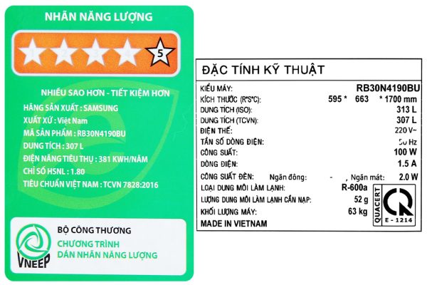 Tủ lạnh Samsung Inverter 307 lít RB30N4190BU/SV