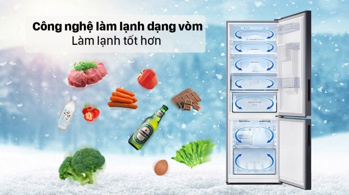 Tủ lạnh sử dụng công nghệ làm lạnh vòm, hơi lạnh được lan tỏa theo hình vòng cung, nhờ đó khí lạnh đi đều khắp tủ giúp duy trì nhiệt độ và độ ẩm ổn định, bảo quản thực phẩm tươi ngon trong một khoảng thời gian dài.