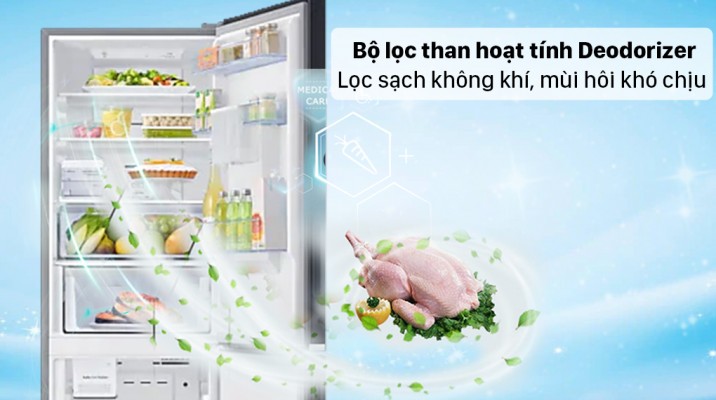 Sử dụng bộ lọc than hoạt tính Deodorizer có tác dụng khử mùi, tinh lọc không khí, loại bỏ nấm mốc cũng như các vi khuẩn, bụi bẩn có trong tủ, giữ lại không khí trong lành để bảo quản rau củ và đảm bảo an toàn thực phẩm cho người sử dụng.