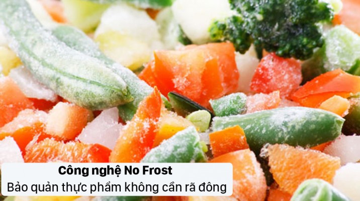 Nhờ công nghệ No Frost khí lạnh được lưu thông và tỏa đều khắp ngóc ngách trong tủ, loại bỏ khả năng làm đông thực phẩm mà vẫn đảm bảo thực phẩm được bảo quản tốt. Đồng thời, giúp tiêu thụ điện năng ổn định.