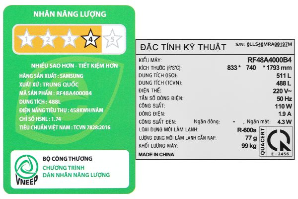 Tủ lạnh với dung tích 488 lít có