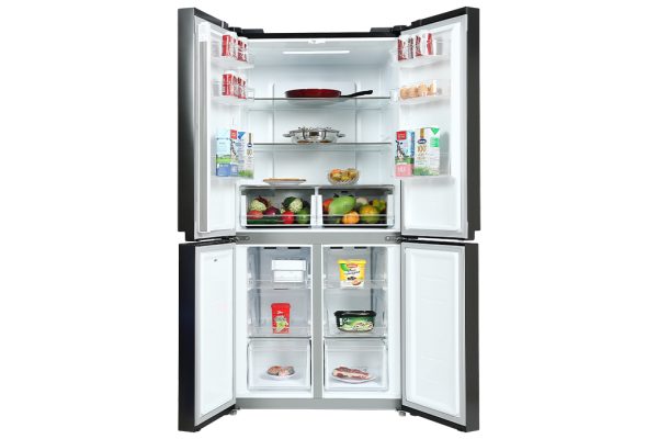 Thiết kế với 4 cửa và bề mặt cửa tủ làm bằng thép không gỉ có độ bền cao, không lưu dấu vân tay, mang đến vẻ ngoài sang trọng, hiện đại cho căn bếp. Đặc biệt, không gian lưu trữ bên trong rộng và các cửa tủ được thiết kế đóng mở độc lập, dễ dàng tìm kiếm thực phẩm yêu thích.