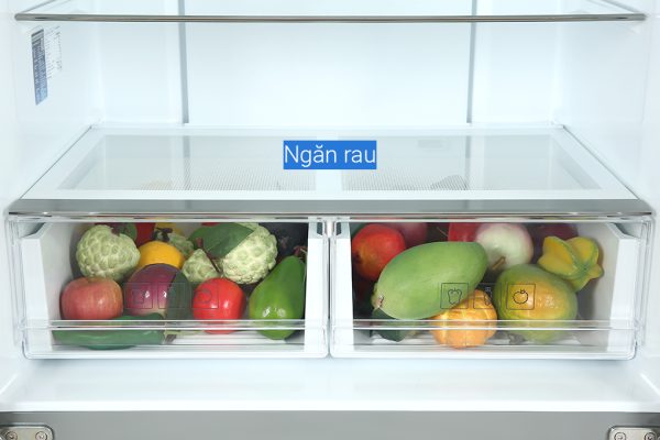 Rau củ được duy trì độ tươi ngon và bảo toàn dưỡng chất nhờ để trong ngăn rau củ FreshZone với thiết kế có nắp đậy kín và tự động kiểm soát độ ẩm phù hợp với thực phẩm. Với thiết kế 2 ngăn, người dùng thoải mái lưu trữ lượng thực phẩm mình muốn.