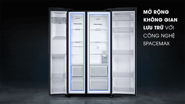 Tủ lạnh Samsung Inverter 635 lít RS64R53012C/SV sở hữu công nghệ SpaceMax viền siêu mỏng, nhằm mở rộng thêm không gian lưu trữ siêu lớn mà không làm tăng kích thước bên ngoài hay tiêu tốn thêm nhiều năng lượng.