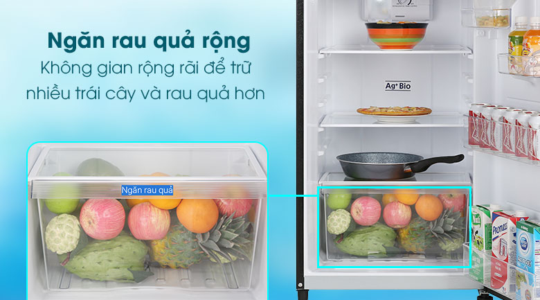 Với ngăn rau củ lớn bạn có thể thoải mái bảo quản nhiều thực phẩm hơn, ngăn rau củ này còn có khả năng giữ ẩm tốt giúp bảo quản rau củ tươi ngon lâu hơn.