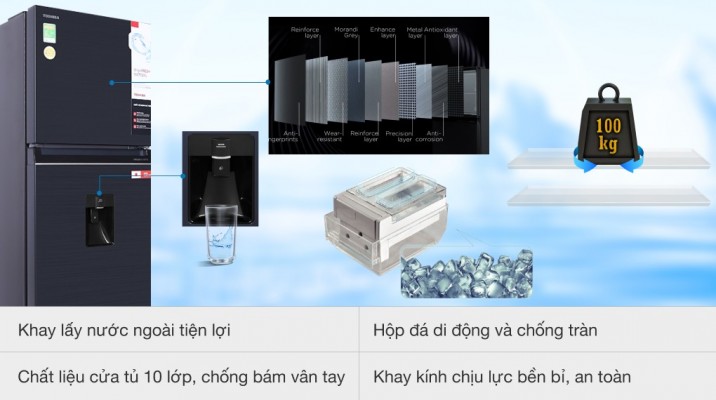 Bạn có thể lấy nước phía bên ngoài cửa tủ lạnh Toshiba GR-RT395WE-PMV(06)-MG, thao tác tiện lợi mà không cần phải mở cửa, giúp bạn thưởng thức được ngay ly nước lọc mát lạnh trong những ngày trời oi bức. Bình chứa nước làm từ chất liệu nhựa an toàn HIPS theo tiêu chuẩn của châu Âu.