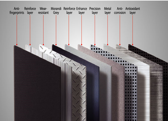 Bề mặt tủ lạnh Toshiba được hoàn thiện tối ưu với 10 lớp vật liệu cao cấp xếp chồng, cho vẻ ngoài sản phẩm sang trọng, tinh tế, chống bám vân tay và hạn chế trầy xước.
