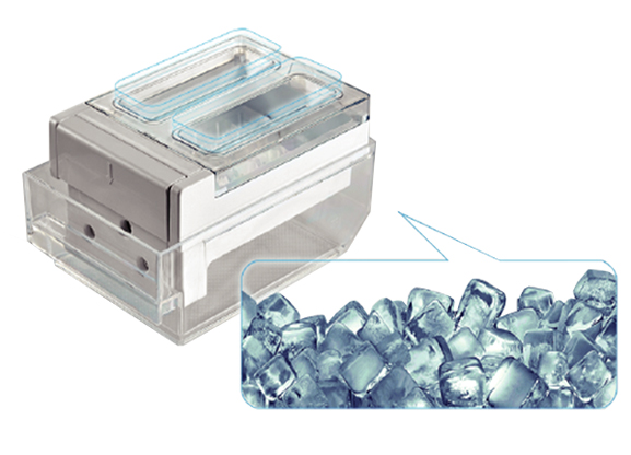 Hộp đá trong ngăn đông có thể di chuyển đến bất kỳ vị trí nào, đi kèm khả năng chống tràn đá ra ngoài rất tiện lợi. Người dùng có thể lấy đá để sử dụng một cách tiện lợi từ hộp đá với cơ chế trợ lực nhẹ nhàng.