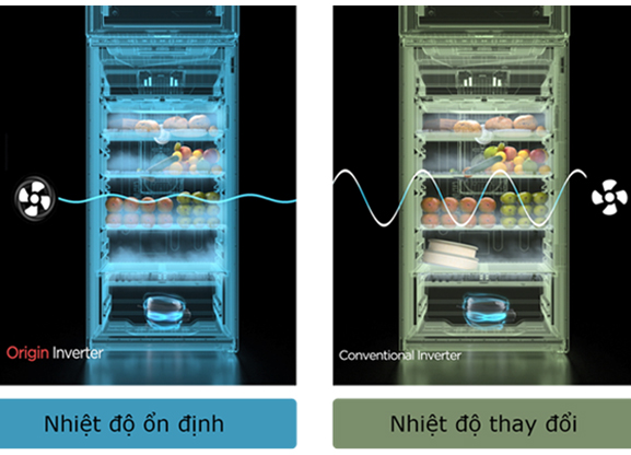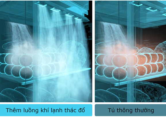 Phân bổ đều luồng khí khắp tủ cùng khí lạnh thác đổ Air Fall Cooling