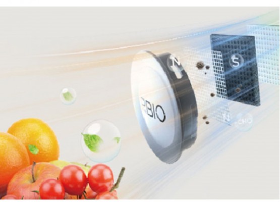 Sử dụng bộ lọc PureBio bằng Ceramic được nhúng tinh thể Bạc (Ag+), chiếc tủ lạnh ngăn đá trên này có khả năng khử mùi, diệt khuẩn tối ưu, góp phần làm cho thực phẩm duy trì được độ tươi ngon và bảo vệ an toàn cho sức khỏe người dùng.