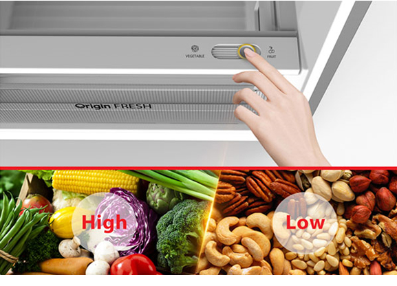 Ngăn rau quả trong tủ lạnh có thể tùy chỉnh độ ẩm phù hợp nhất cho từng loại thực phẩm, giúp các món rau xanh tươi ngon, mọng nước và giữ nguyên chất dinh dưỡng.