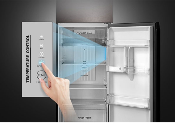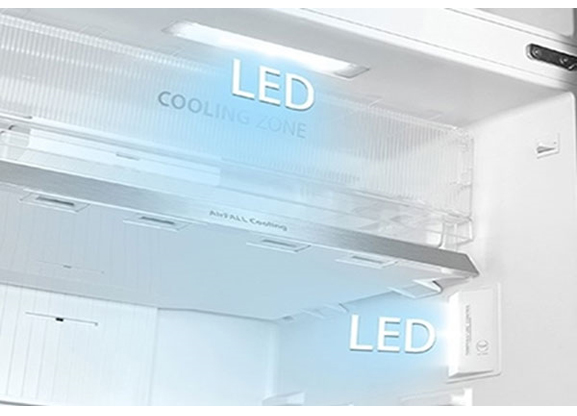 Nhờ việc bổ sung thêm luồng khí lạnh thổi xuống từ phía trước, kết hợp với luồng khí từ phía sau, Air Fall Cooling giúp hơi lạnh được lan tỏa mọi ngóc ngách bên trong tủ, làm lạnh thực phẩm một cách toàn diện, nhằm giữ được độ tươi ngon và kéo dài thời gian bảo quản.