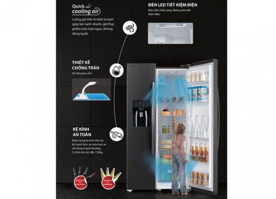 Không những thế hệ thống làm đá tự động 3 trong 1 cho phép bạn lấy nước lạnh, đá viên hoặc đá xay ngay tức thì tùy vào nhu cầu sử dụng. Đồng thời với thiết kế lấy nước ngoài tiện lợi, bạn nhanh chóng giải tỏa cơn khát mà không cần mở hẳn cửa tủ.