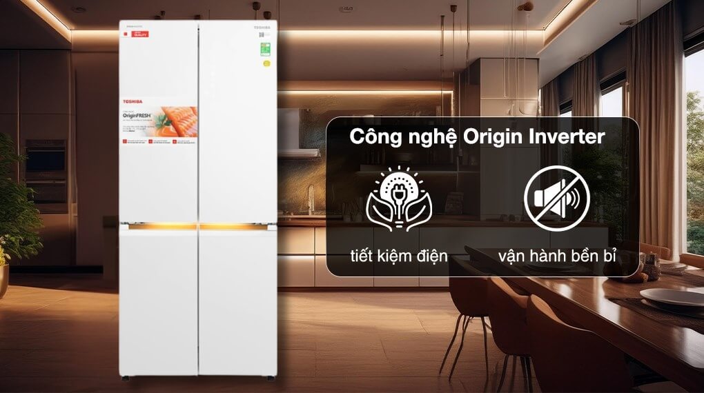 - Công nghệ Origin Inverter: Giúp tủ lạnh vận hành êm ái, tiết kiệm điện năng hiệu quả và kéo dài tuổi thọ sản phẩm.