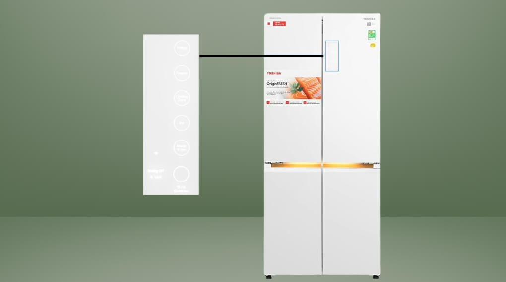 - Bảng điều khiển cảm ứng bên ngoài: Thiết kế sang trọng, giúp người dùng dễ dàng điều chỉnh nhiệt độ và các chức năng mà không cần mở cửa tủ, hạn chế thất thoát hơi lạnh.