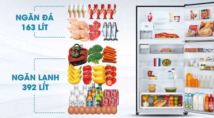 Với dung tích 555 lít và thiết kế các ngăn kệ chứa vô cùng hợp lý và khoa học, cho bạn thêm nhiều không gian hơn để bạn có thể bảo quản được nhiều thực phẩm hơn, phù hợp cho những gia đình có trên 5 thành viên sử dụng.
