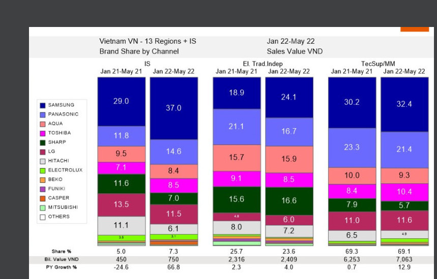 Trong 5 mẫu này có đến 4 mẫu đến từ thương hiệu Panasonic, và Samsung. 2 hãng chiếm đến hơn 50% thị phần tủ lạnh tại thị trường Việt Nam, do mẫu mã sản phẩm đa dạng, trải dài nhiều phân khúc. Panasonic được đánh giá cao ở độ bền và ổn định trong vận hành, trong đó Samsung thiết kế có phần trẻ trung, nhiều tính năng hiện đại và giá thành cũng thấp hơn 1 chút. Đặc biệt cả 2 đều có những mẫu tủ sở hữu tính năng “đông mềm”, theo đánh giá của An Việt và nhiều người tiêu dùng là rất hữu ích. Nên cân nhắc khi chọn lựa ở thời điểm hiện tại.