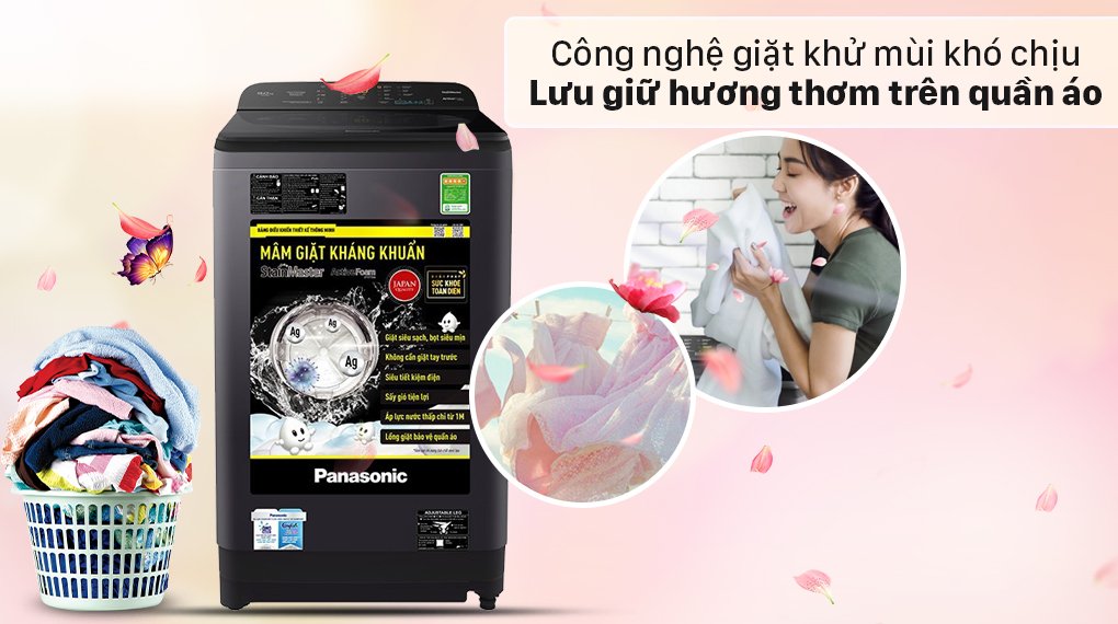Chế độ giặt khử mùi mới có khả năng tạo hương tự nhiên, dịu nhẹ và có khả năng lưu hương bền lâu trên sợi vải ngay cả khi sử dụng loại bột giặt thông thường nhờ nhiệt độ nước lý tưởng với hiệu quả vò giặt xuất sắc. Nhờ đó, bạn có thể tận hưởng cảm giác thoải mái sau một ngày dài hoạt động mà không còn e ngại những mùi khó chịu bám trên áo quần. Nhìn chung, máy giặt Panasonic 10 kg NA-F100A9BRV là chiếc máy giặt lồng đứng rất đáng để bạn cân nhắc cho nhu cầu sắp tới. Sản phẩm đáp ứng tốt cho nhu cầu giặt giũ của các gia đình từ 5 - 7 người, mang lại hiệu quả giặt sâu và sạch khuẩn, phù hợp với người có làn da nhạy cảm như trẻ em và người có làn da nhạy cảm với công nghệ giặt Active Foam và mâm giặt kháng khuẩn Ag. Ngoài ra, công nghệ giặt tẩy chuyên biệt StainMaster sẽ khiến việc giặt giũ của các bà nội trở nhẹ nhàng hơn với khả năng đánh bật mọi vết bẩn cứng đầu. Máy chắc chắn là lựa chọn xứng đáng với tầm giá để sử dụng lâu dài.