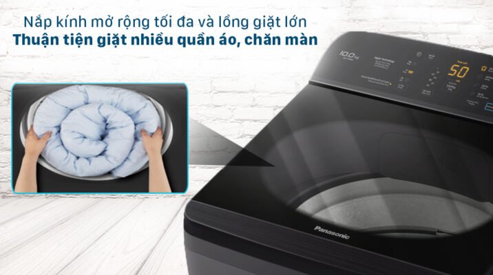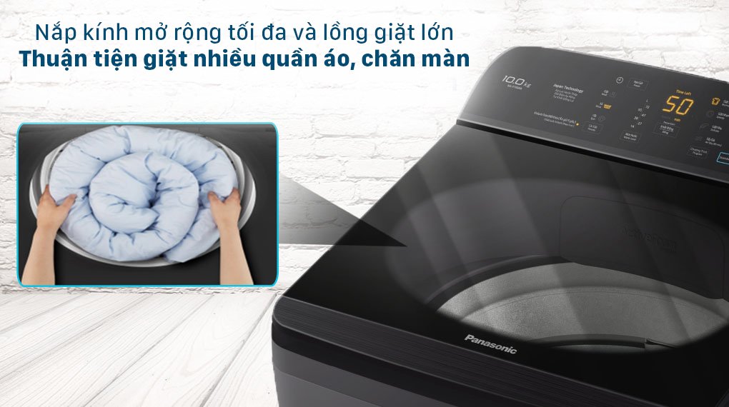 Máy giặt Panasonic cửa trên này sở hữu gam màu đen bạc sang trọng, dễ dàng phối hợp với các nội thất khác trong ngôi nhà. Ngoài ra, với khối lượng giặt tối đa đến 10 kg quần áo, đây là sự lựa chọn phù hợp cho những hộ gia đình từ 5 - 7 người hoặc ít thành viên hơn nhưng lại có nhu cầu giặt giũ thường xuyên với số lượng lớn.