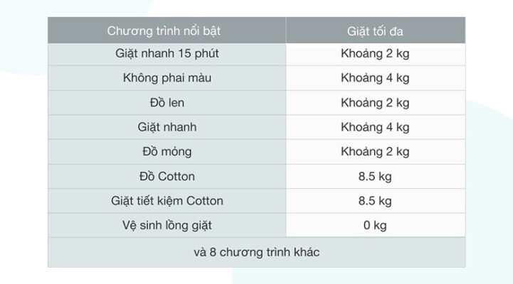 16 chương trình giặt giúp bạn thoải mái lựa chọn