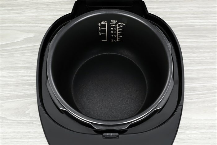- Lòng nồi bằng hợp kim nhôm phủ chống dính Whitford, bền bỉ, dễ vệ sinh.