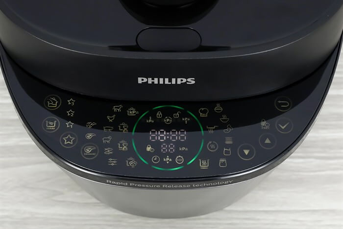 - Nồi áp suất Philips màu đen trung tính, sang trọng, giúp tăng vẻ đẹp hiện đại cho không gian bếp gia đình.
